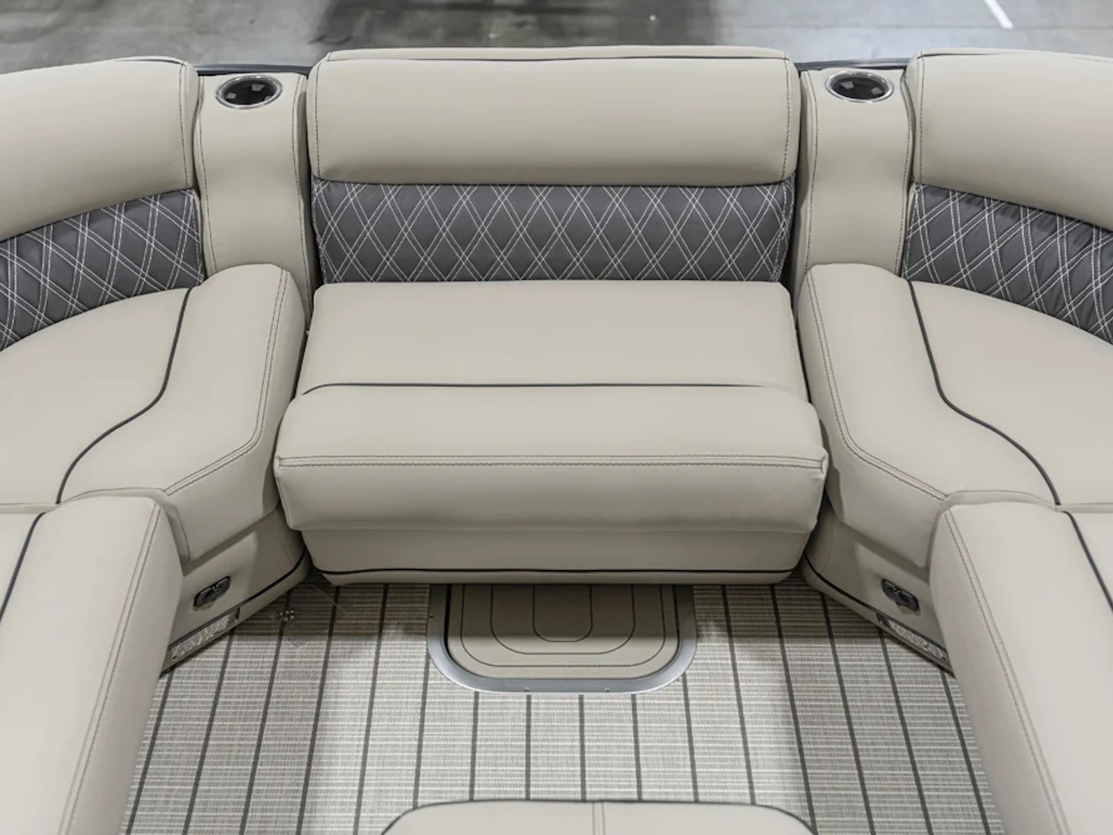 Fishing Center, with Rod Holders, Rod Storage, Stow-Away Tackle Trays and Yeti-Ready Cupholders | Triple Toon Package w/ Midship Storage - Cabrio | Stow-Away Table and Storage in Port Chaise
