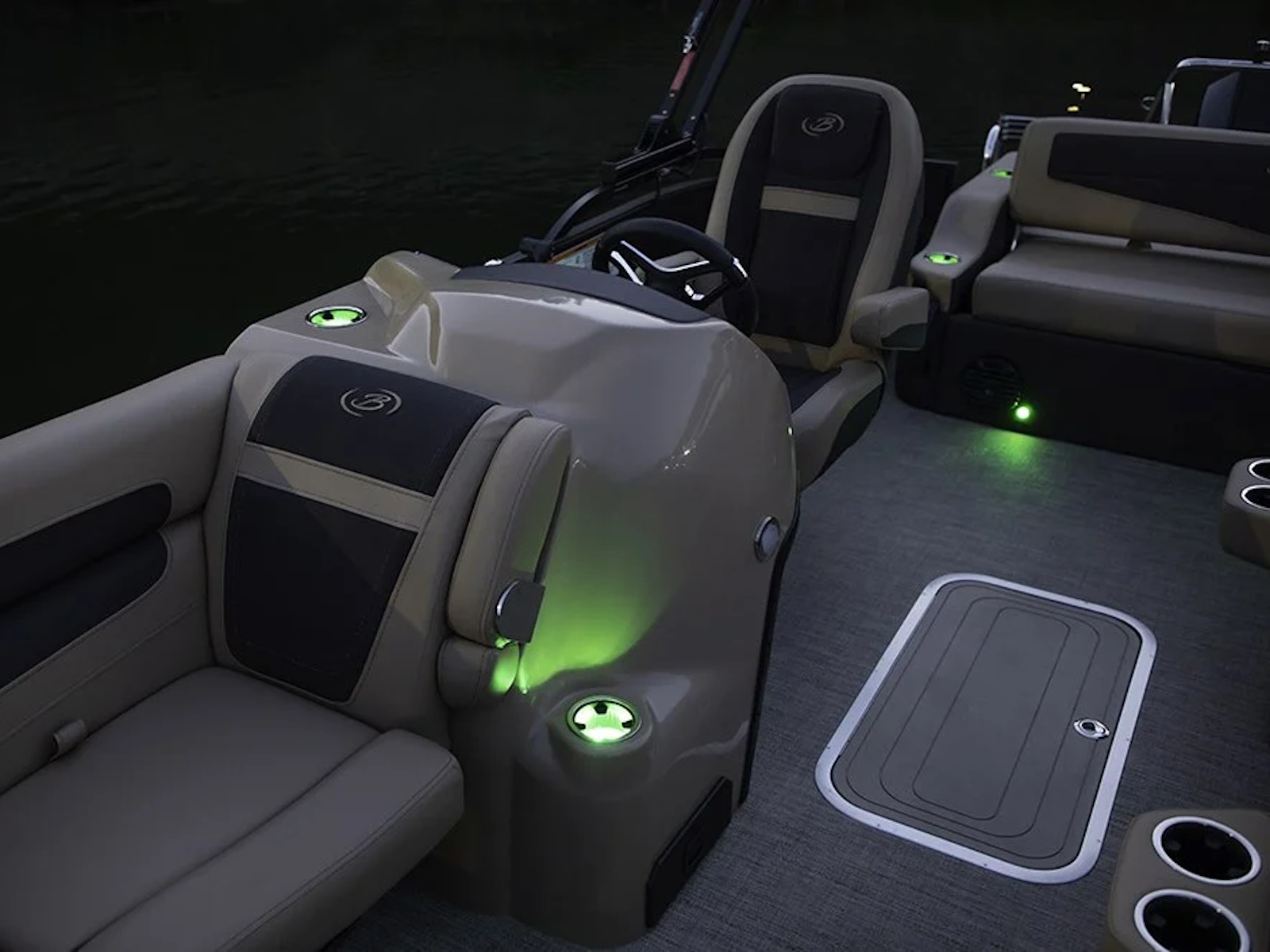 - Raised Helm Platform w/Marine Mat and "Yeti-Ready" Cupholder(s)