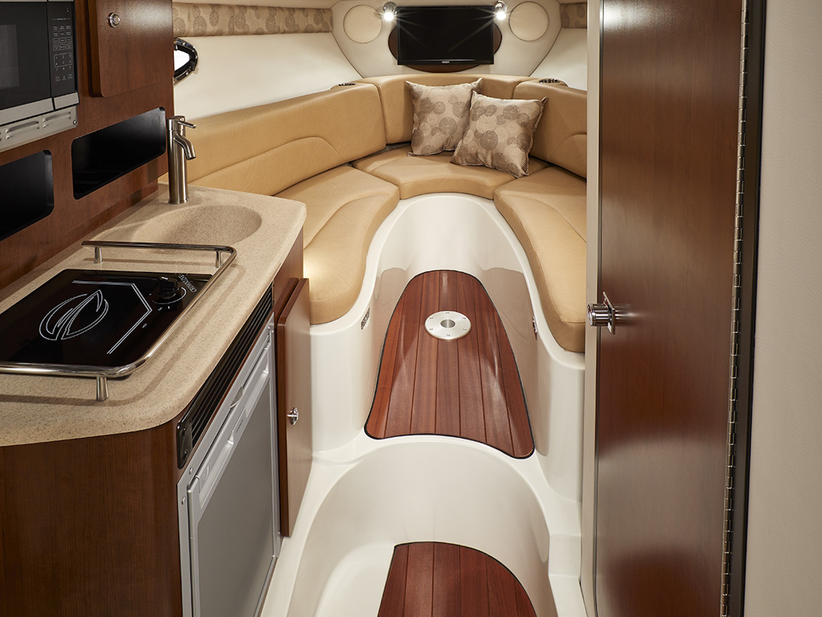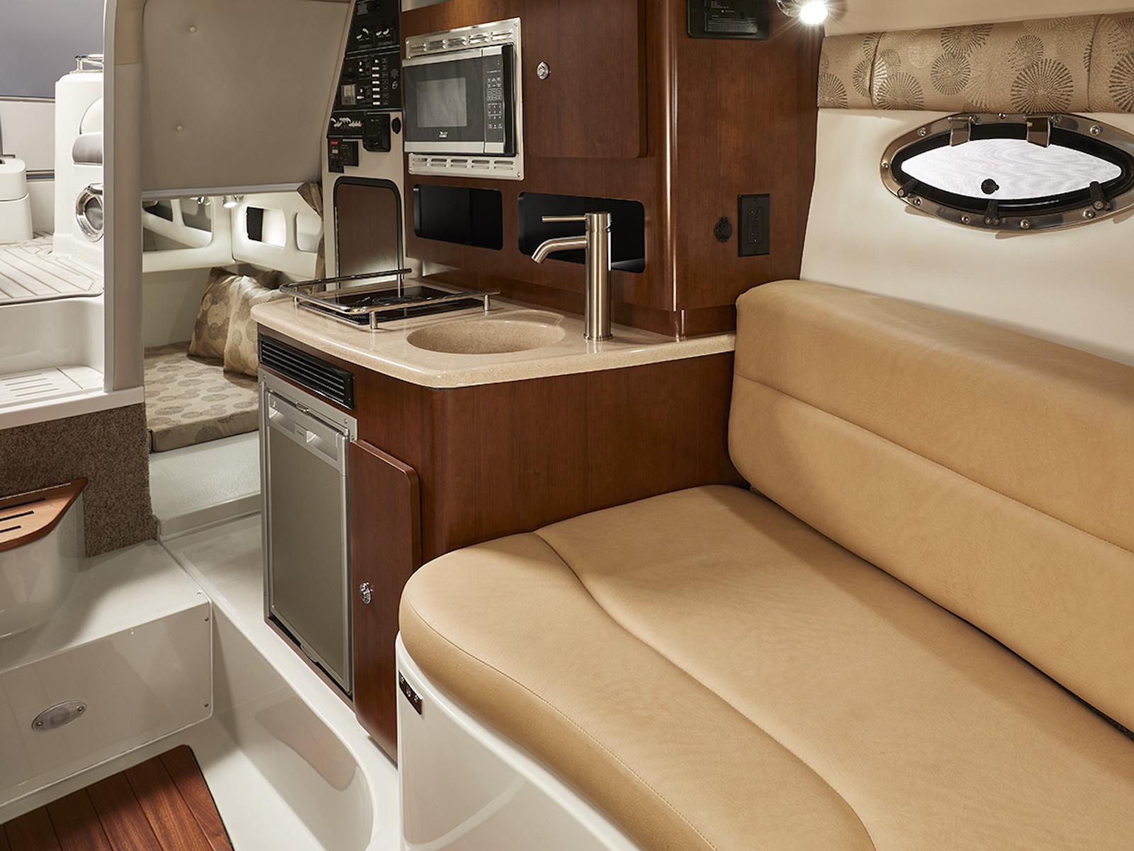 Crownline Boats is excited to introduce the beautiful 280 CRX outboard powered cruiser. Beautiful Crownline exterior style lines are only the beginning of this cruiser’s story. The cockpit and cabin areas are thoughtfully designed to provide amazing days on the water, and lovely overnighting as well. Now you don’t have to head home at the end of a glorious day of boating. Stay, and wake up to the beautiful sunrise of a new day on the water!