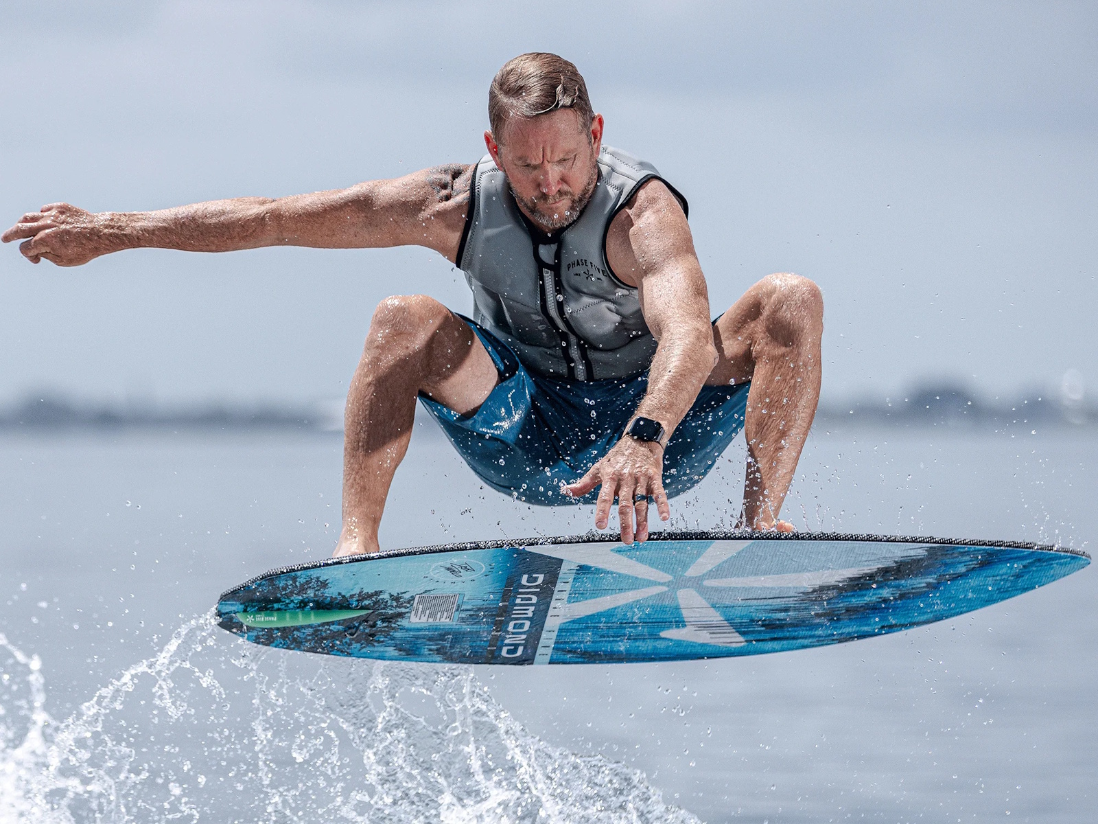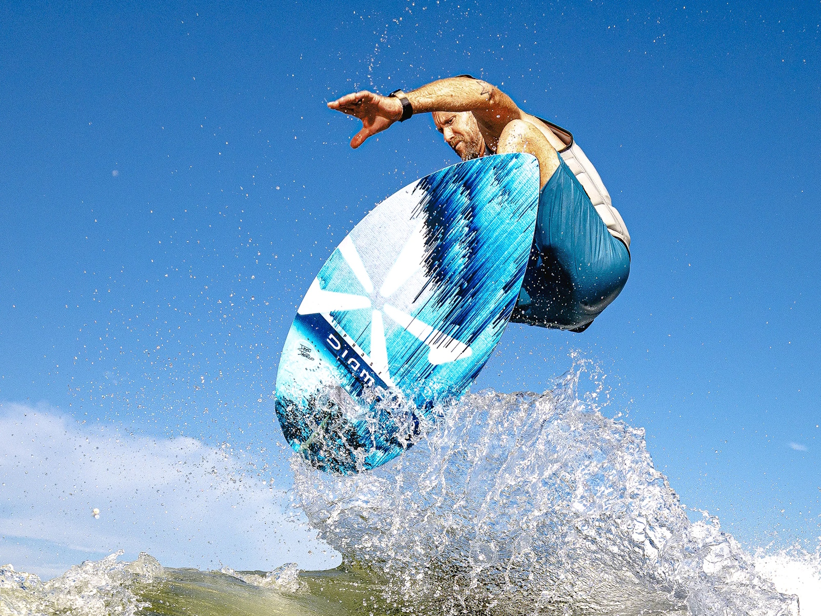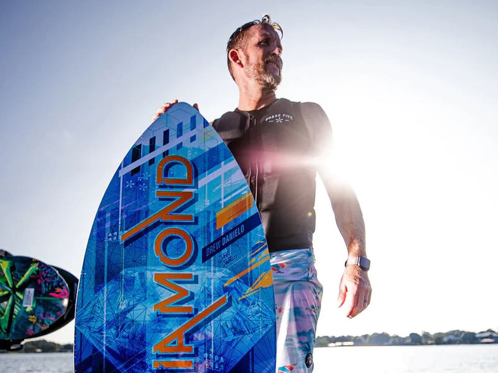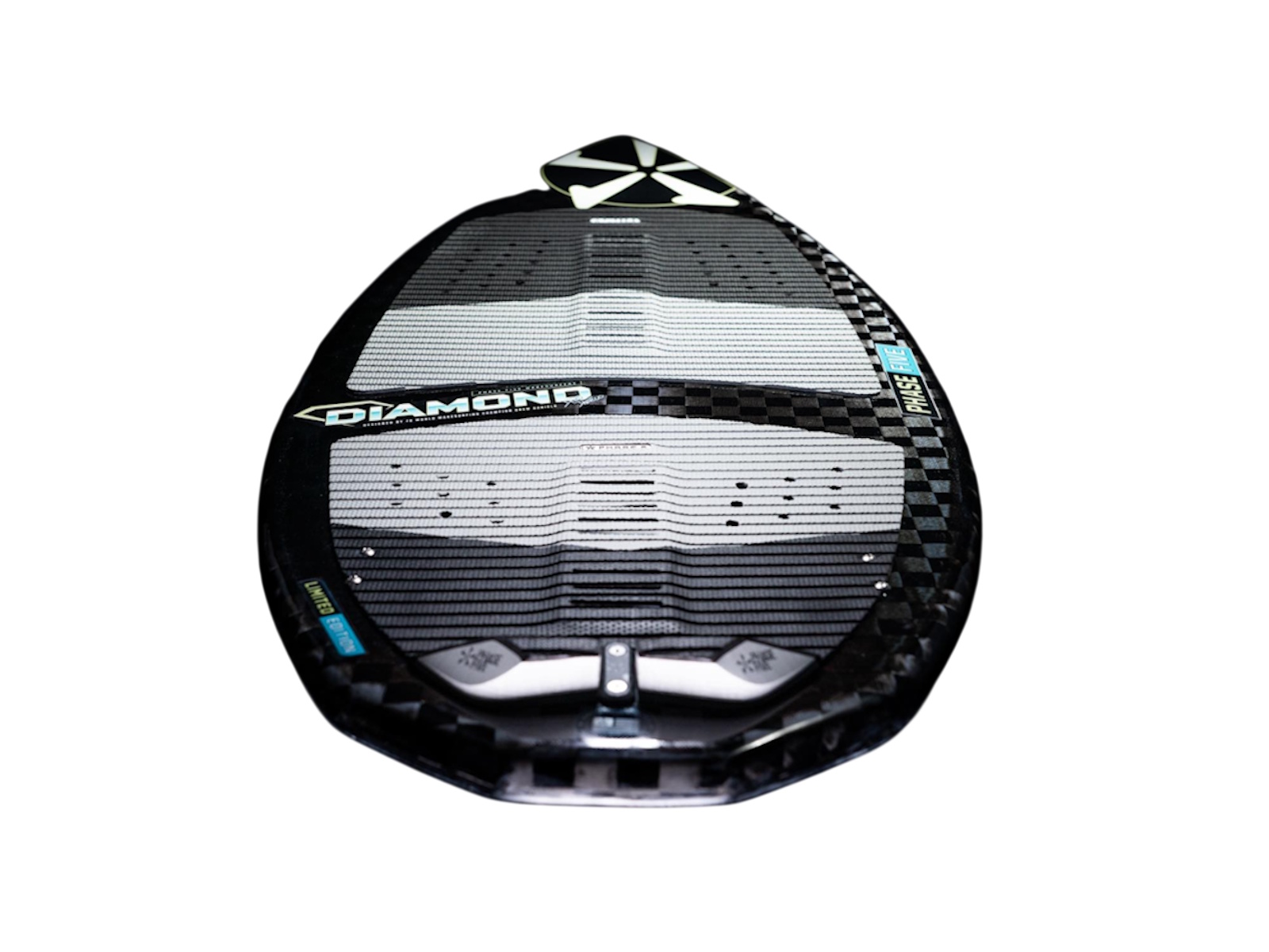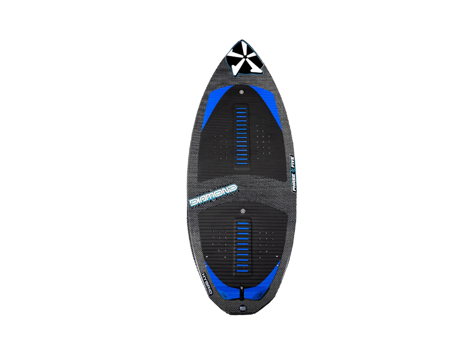 Drew Danielo wanted more pop and speed, and that is exactly what we created with the Phase Five Diamond Turbo Wakesurfer. We enhanced the original Diamond tail shape with a wider, more boxed out design. This upgraded design feature delivers experienced riders the opportunity to go big. The Turbo tail design is also the solution for large riders who need more push and surfers using smaller, less powerful waves. The Diamond Turbo is built using our unique Hybrid Carbon™ material for ultimate strength. We configured the Diamond Turbo with a three fin setup installed with our 1” Skim Fin (2” on the 57”) in the center accompanied by 1” Fakie Skim fins on the outside.