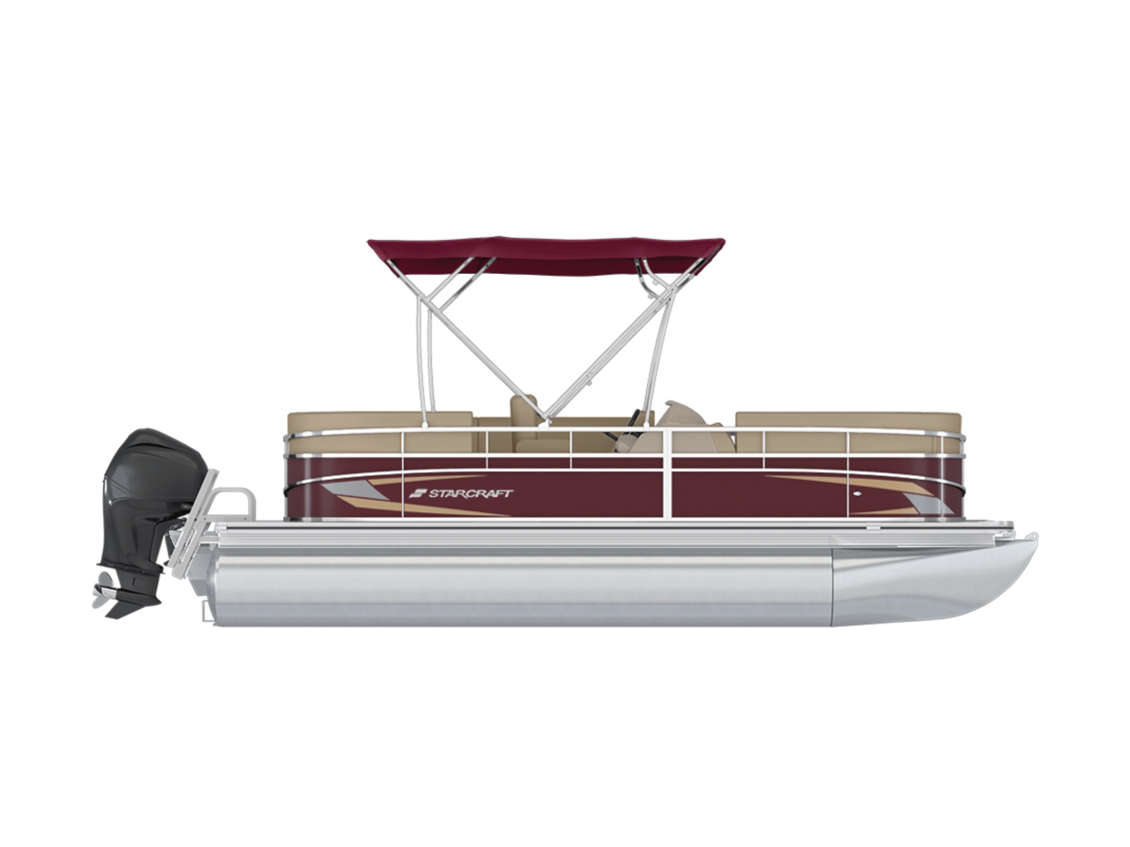 Built for affordability and all-day fun, the Starcraft LX 16 F aluminum pontoon boat offers a winning combination of fishing functionality and comfortable relaxation. Protection from the sun is assured with a standard bimini top, keeping you cool and comfortable throughout your adventure. The driver captains the vessel from a low-back bucket helm seat, providing control and visibility during navigation. Re-entering the boat after a refreshing swim is a breeze thanks to the convenient rear entry ladder. Anglers are well-catered to with front fishing seats, perfect for casting lines and reeling in the catch. For added convenience, a front livewell cleverly built into an ottoman keeps your baitfish healthy and ready for action. The back of the boat features comfortable lounge seating, ideal for relaxing companions who can enjoy the scenery while you focus on fishing or simply soak up the sun. With its focus on affordability, functionality, and comfortable seating, the Starcraft LX 16 F pontoon boat is the ideal choice for creating fun and memorable days on the water.