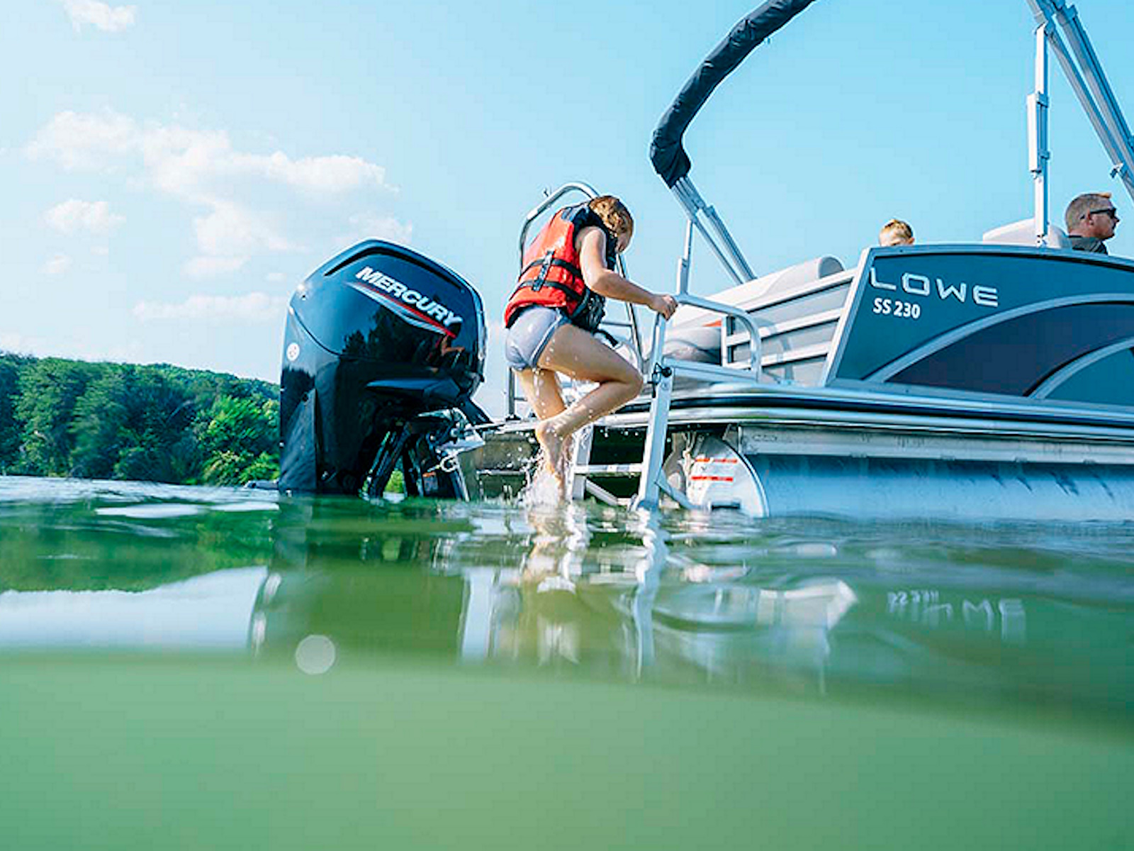 Fold down 4-step ladder provides extra support for getting in and out of the water.