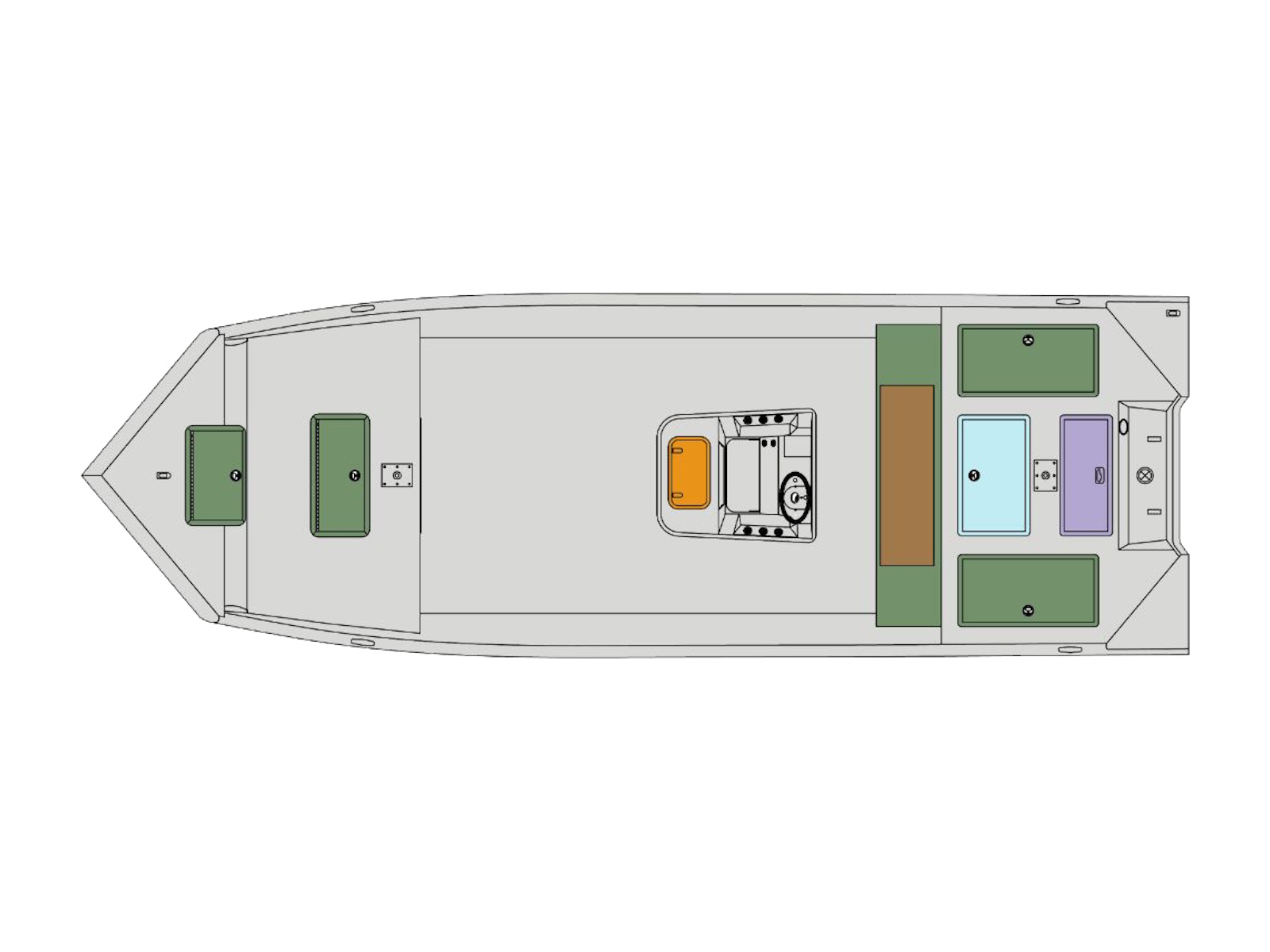 • FG Center Console (15 G Aerated Baitwell) (1) 48” Bench Seats, w/cushions